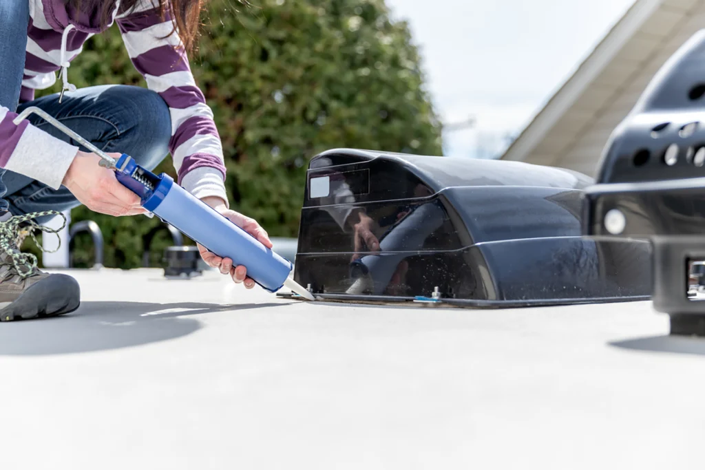 Once the roof is perfectly clean and dry, you must inspect every single inch of sealant on that roof—around every vent, seam, and fixture. Any old, cracked, or peeling sealant must be carefully scraped away.